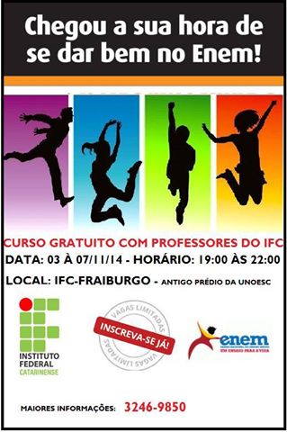 Nesta quarta-feira (01/10), os educadores Fabio José Rodrigues Pinheiro e Tiago Lopes Gonçalves diretor geral e diretor de ensino respetivamente do Instituto Federal Catarinense – IFC Campus de Fraiburgo estiveram divulgando as matriculas dos cursos técnicos que serão oferecidos em 2015, para integrantes da Apafec (Associação Paulo Freire de Educação e Cultura Popular) e a […]