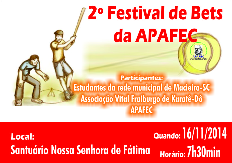 Para divulgar o 2º Festival de Bets da Apafec que acontece no próximo domingo (16/11), a entidade lança amanhã 13/11, às 20h00min no Dojô Cidadão do Futuro o vídeo da primeira edição do Festival de Bets, a exibição acontecerá durante encontro com pais, mães, meninos e meninas que participaram do 2º Festival de Bets da […]