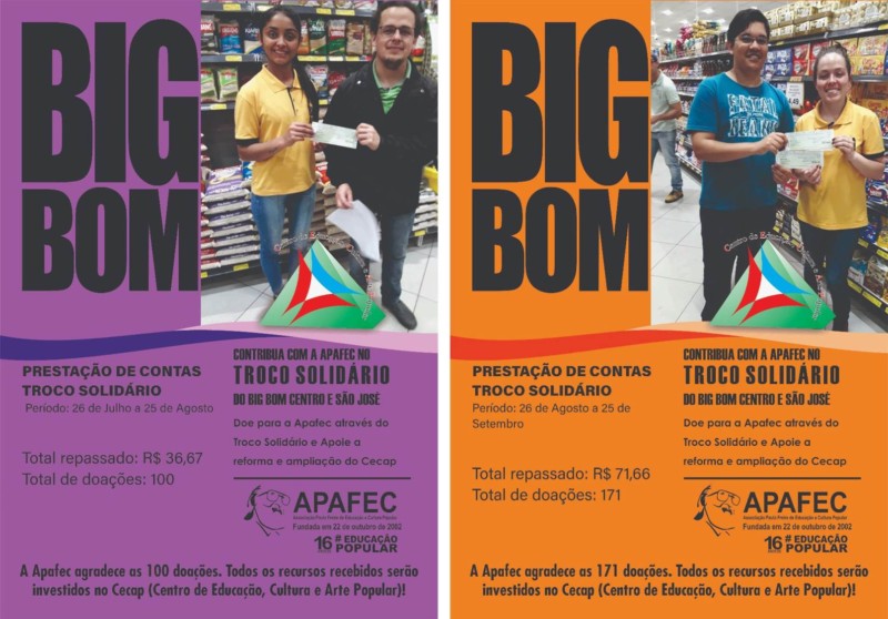 O Troco Solidário do Supermercado Big Bom é uma iniciativa para incentivar a comunidade fraiburguense fazer doações para organizações que realizam ações sociais, culturais, esportivas e educacionais em Fraiburgo. Clientes do Supermercado Big Bom Centro e São José, são estimulados a fazerem doações dos centavos que sobram de suas compras, a Apafec (Associação Paulo Freire […]