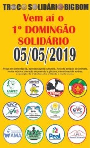 Na noite de quarta-feira 27 de março, reunidos no Dojô Pablo Henrique do Nascimento, entidades que são beneficiadas com as doações do Troco Solidário do Big Bom, decidiram organizar a 1ª Edição do Domingão Solidário no domingo 05 de maio das 9h00min as 18h00min, no estacionamento do Supermercado Big Bom Centro.