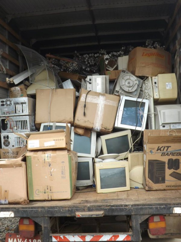 1ª ação – nov. 2013 – Carregamento de 3 toneladas de sucata eletrotônica entregues a empresa Alpha Lixo Digital
