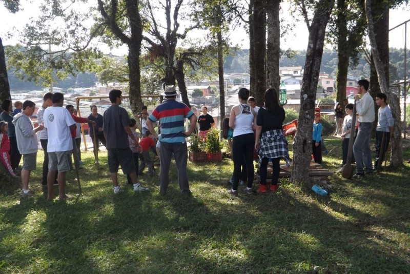 2ª ação – set. 2014 – Entrega das 120 mudas de araucárias durante encontro estadual da juventude da cidade e da roça