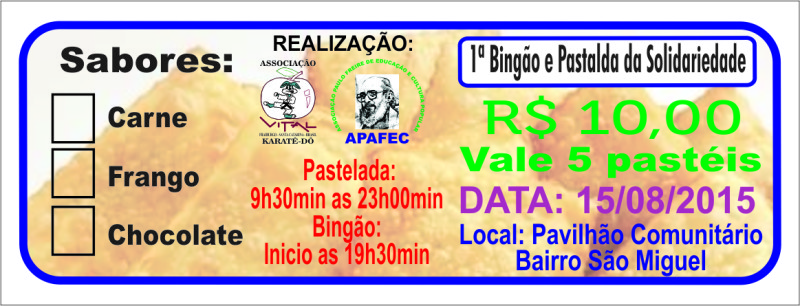 A promoção de mobilização de recursos será organizada pela Associação Vital Fraiburgo de Karatê-dô e Apafec (Associação Paulo Freire de Educação e Cultura Popular).